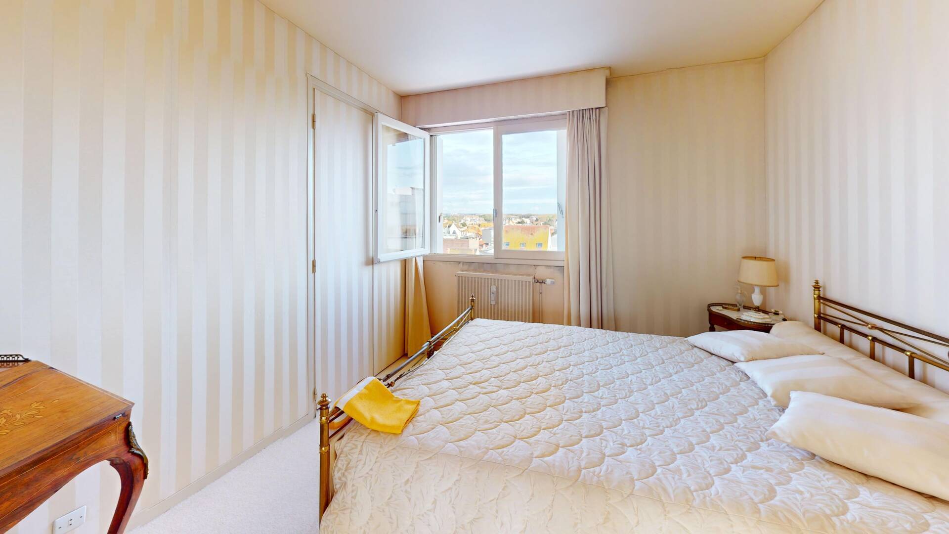 Il occupe toute la partie FACE MER de l’étage ce qui explique la Vue Mer du séjour et de 2 chambres (exceptionnel !) plus le retour sur la rue en grande partie.